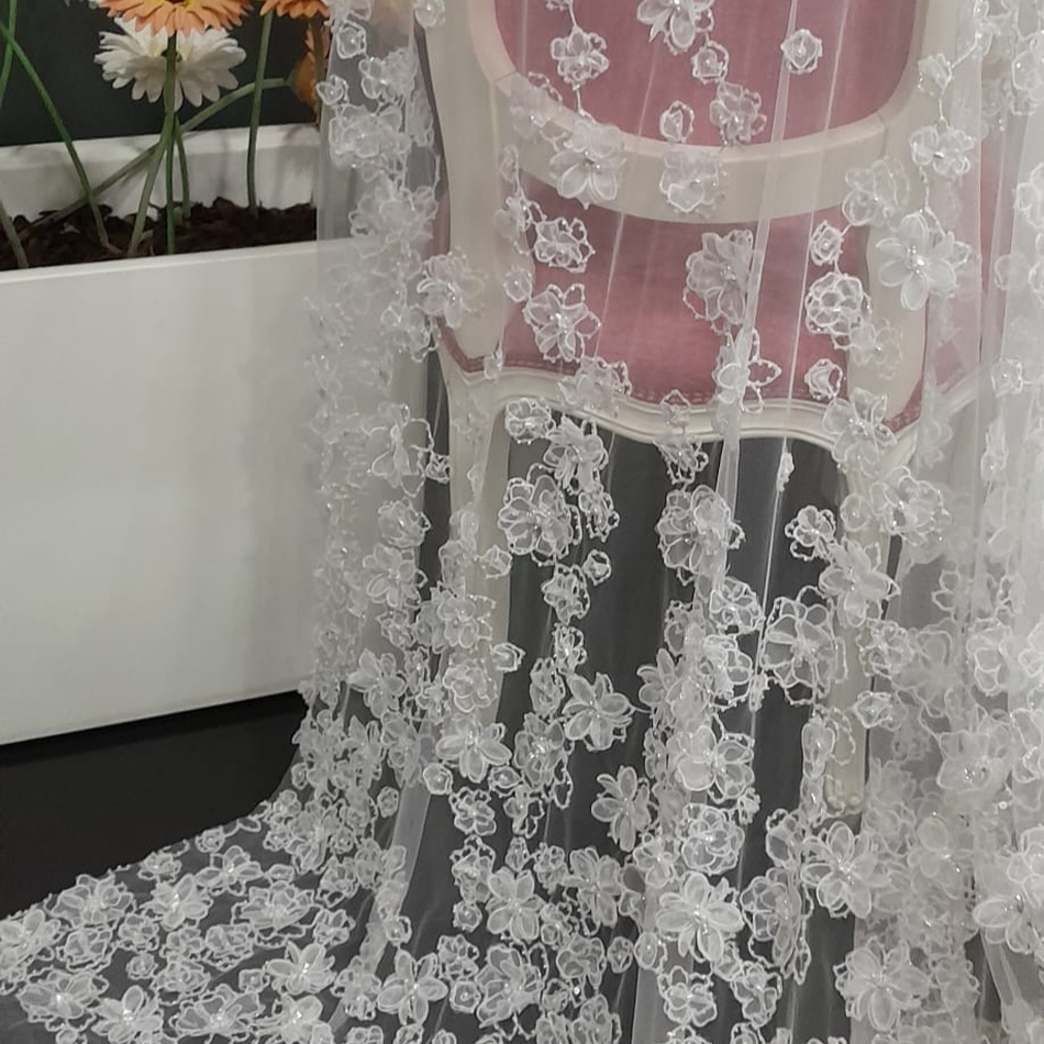 RENDA PARA VESTIDO DE NOIVA COM FLORES 3D BORDADAS EM DEGRADÊ