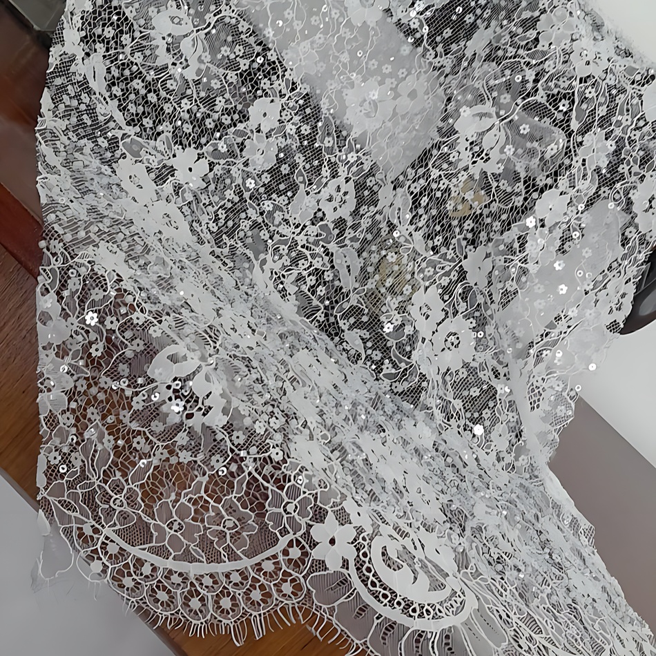 RENDA PARA VESTIDO DE NOIVA EM RENDA CHANTILLY COM PEDRARIA E LANTEJLOULAS EM FORMA DE PEQUENINA FLOR.