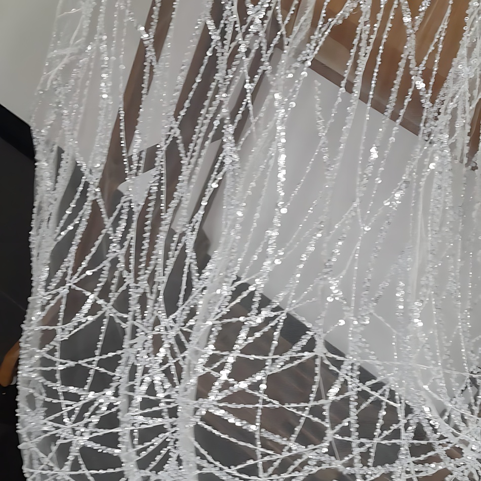 RENDA PARA VESTIDO DE NOIVA BORDADA COM PEDRARIA E CRISTAIS. DESENHO ABSTRATO PARA QUEM GOSTA DE ARROJAR!